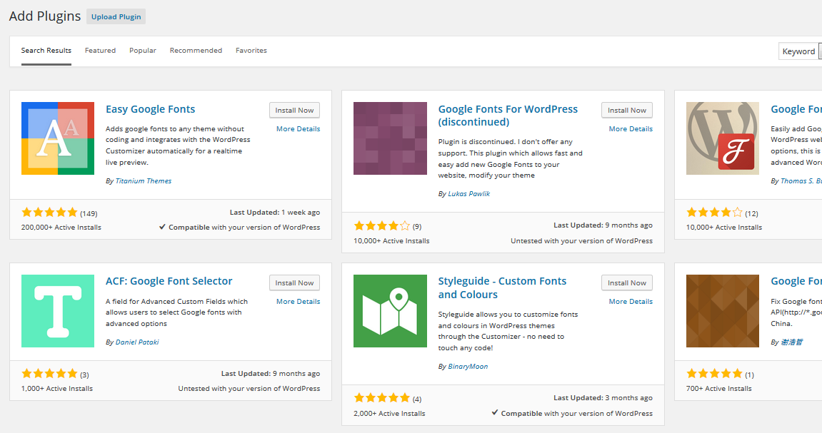 In the top right hand corner, type in "Easy Google Fonts" in the search bar. Make sure to select the plugin by Titanium Themes