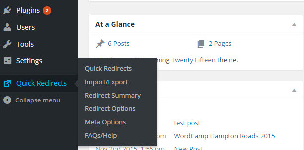 Click on Quick Redirects in the menu at left. This will bring up the Quick Redirects main screen. You will see the blanks where you can Add New Redirects