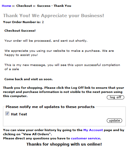 | 4. | Edit the Successful Checkout page in Zen Cart |