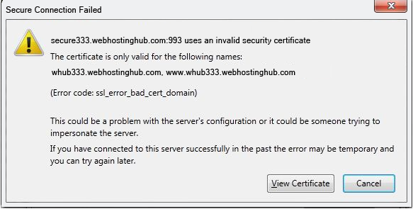 If you instead, use the shared SSL of your server to connect, like ehub34.webhostinghub.com this can prevent you from having to accept an exception in your mail client anytime we renew the shared SSL.